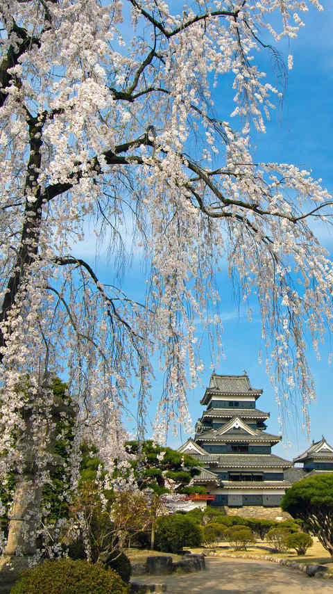 松本城と枝垂桜