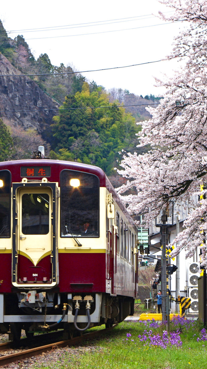 桜の中を走る わたらせ渓谷鉄道