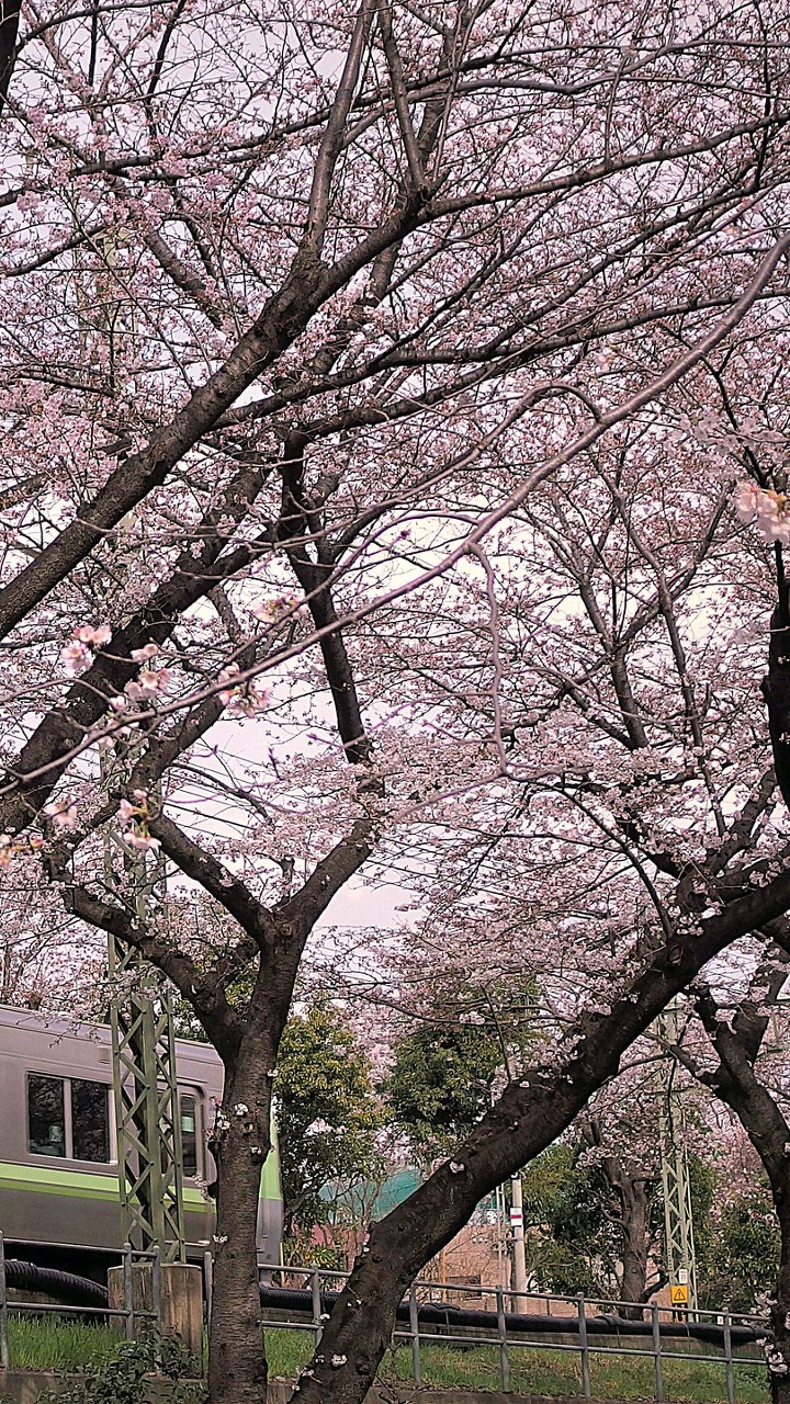 京王電車と桜並木