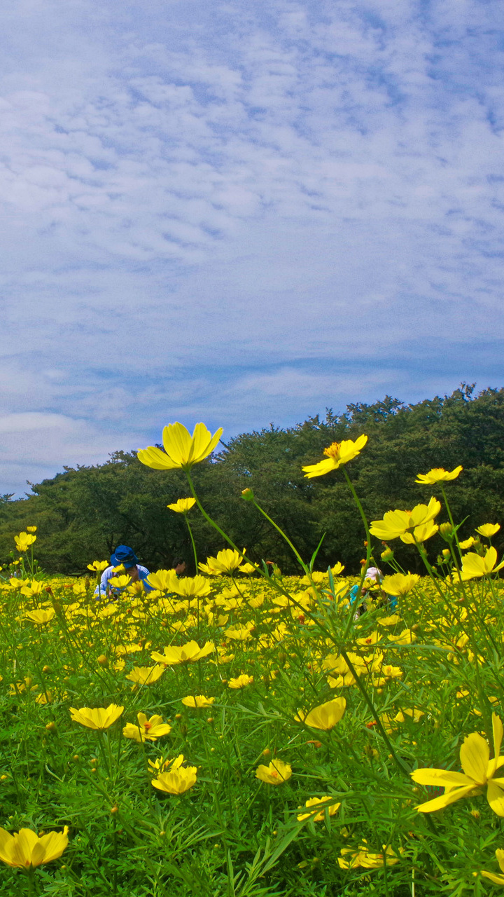 秋の空とコスモス